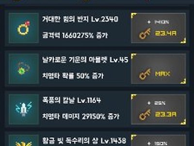 크르르 : 봉식이의 보물 강화를 따라갑니다. 공격속도, 공격력증가, 크리티컬 데미지 및 확률 등. 펫이 봉식이보다 셉니다 (...)